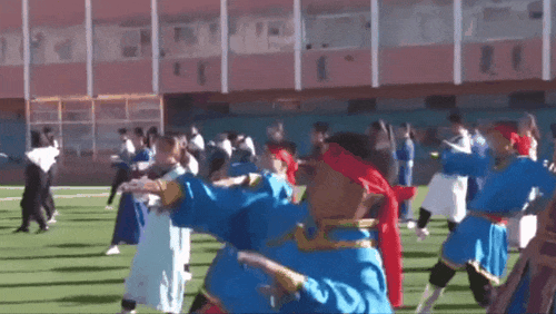 内蒙古几所中学的学生,则在课间跳起了雄壮的蒙古舞。