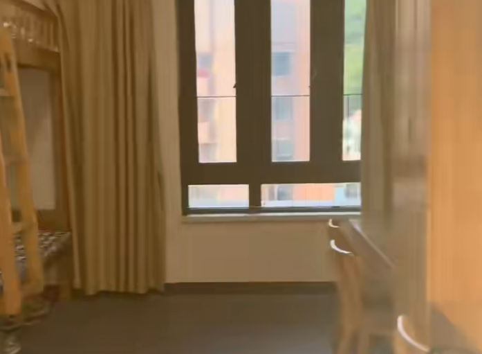 宿舍是四人一间,用的都是实木家具,有专属书桌和淋浴间,热水24小时供应,家长再也不用担心孩子在学校住得不好。