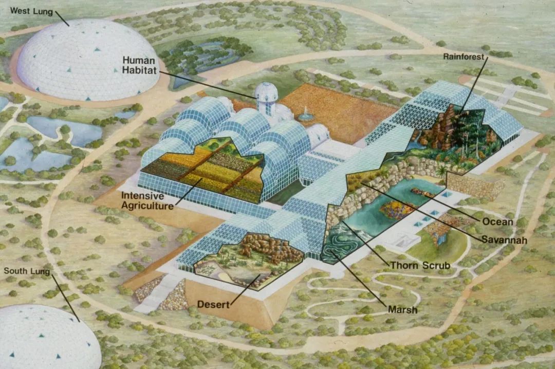 “生物圈2号”设计图。(图片来源:The Institute of Ecotechnics)