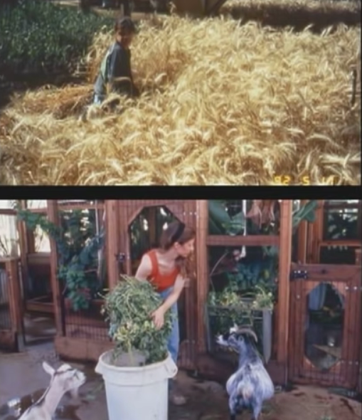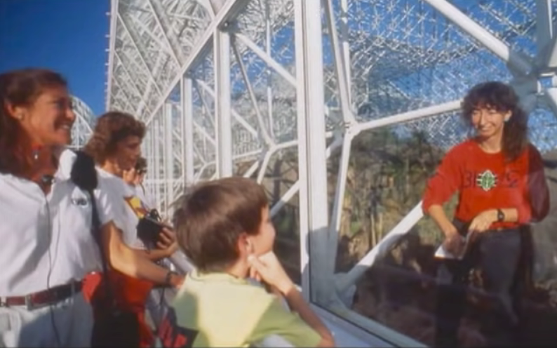 1991年到1993年间,四男四女在里面封闭生活了两年。他们自己种植作物、喂养牲畜,循环利用所有空气和水。