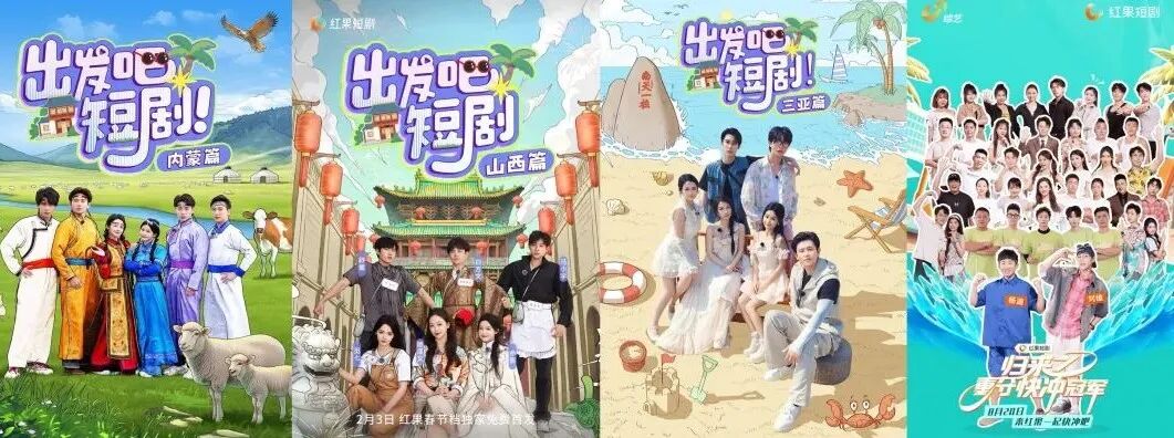 今年红果推出了三季横屏户外旅行综艺《出发吧短剧》,随即还联合综艺节目《快乐向前冲》推出室外竞技类节目《归来之重夺快冲冠军》。让短剧人气王延展到综艺赛道也许只是拓展市场的计划之一。