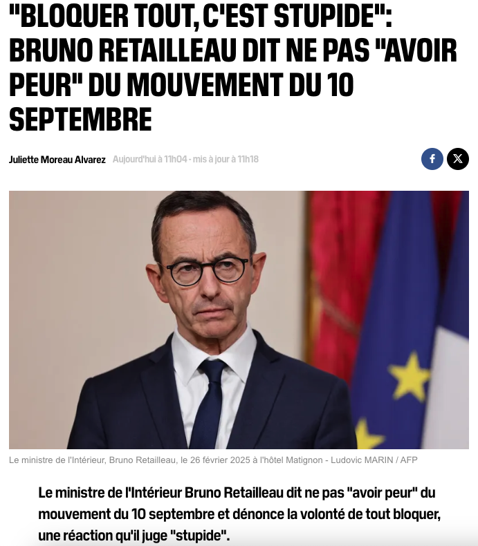 这次游行罢工的规模已经足够大,需要各位引起重视了。法媒报道,5号今天,内政部长布鲁诺·瑞泰洛(Bruno Retailleau)表示,他承认预计会有“大规模行动”。已经和各地政府打招呼了。