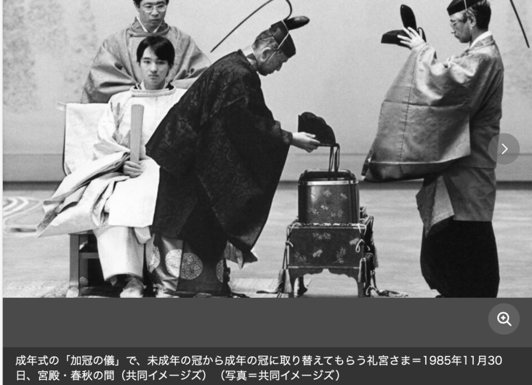 “加冠仪式”将于宫殿内举行,届时德仁天皇、雅子皇后、以及秋筱宫夫妇,以及全体皇族成员都要出席该仪式。