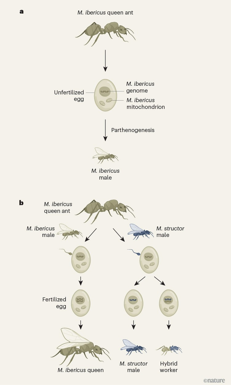 Messor ibericus蚁后可以产生两个不同物种的雄性。| Nature