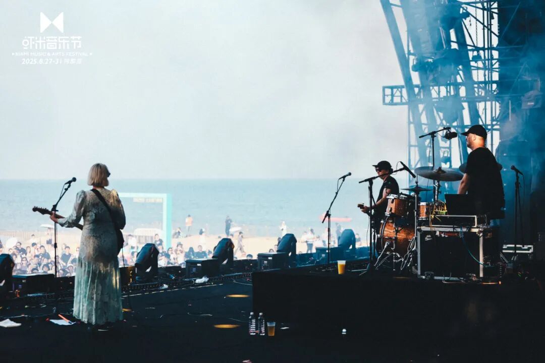 在现场,我见到了来自丹麦哥本哈根的独立摇滚二人组The Raveonettes。时隔11年后,他们再度来华演出,乐器加持的双人声听着既有五六十年代的复古感,又透着别样的时髦气韵。而来自吉尔吉斯斯坦的VTOROI KA登台热场时,前奏一响起就引得满场惊呼。人们跟着陌生的语言哼唱“诶哦诶哦诶诶哦”,律动感不分国界地感染了整片草坪。