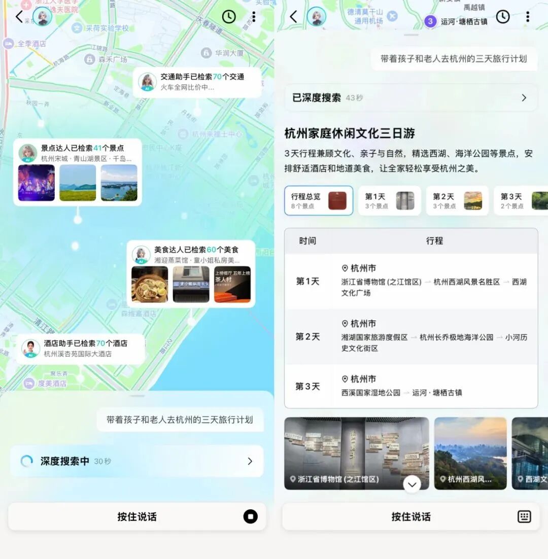 于是,听爹话的高德迎来了“史诗级更新”,把地图导航和AI结合。按高德CEO郭宁的话说:“地图不再是一个你问我答的‘工具’,而是一个先于你思考的‘伙伴’。”