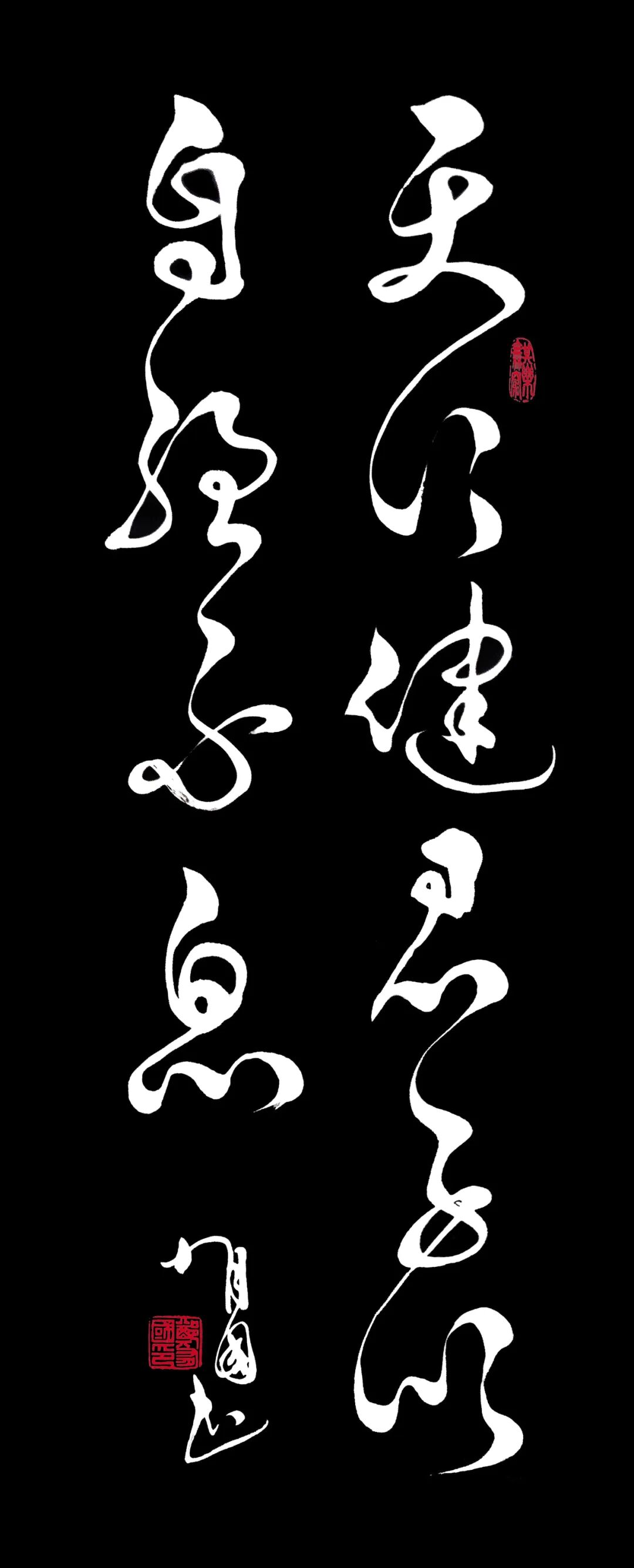郑有国先生书法的另一独到之处,是对汉字五行生克平和的追求。道生一,一生二,二生三,三生万物,他的书法不仅是艺术创造,更是道家文化的传承发扬,他深研汉字背后的文化底蕴,将五行学说融入书法创作之中,使每一个字达到阴阳平衡、五行和谐的状态。一阴一阳之谓道,继之者善也,成之者性也,郑有国先生的书法创作体现着这样的哲学思想,通过对阴阳五行的巧妙运用,使得每一幅作品都如同天地之间的自然法则一般,浑然天成。这种与天地人化为一体的理念,令书法成为“天地之大德曰生”的文化载体,带着生命哲学表达的张力,传达着人与自然和谐共生的美好愿景。