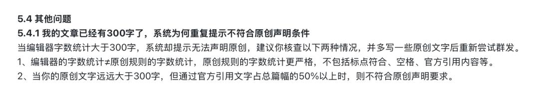 而他提供的“微信公众平台文章原创保护指引”里还是留有“300字”的历史标准。