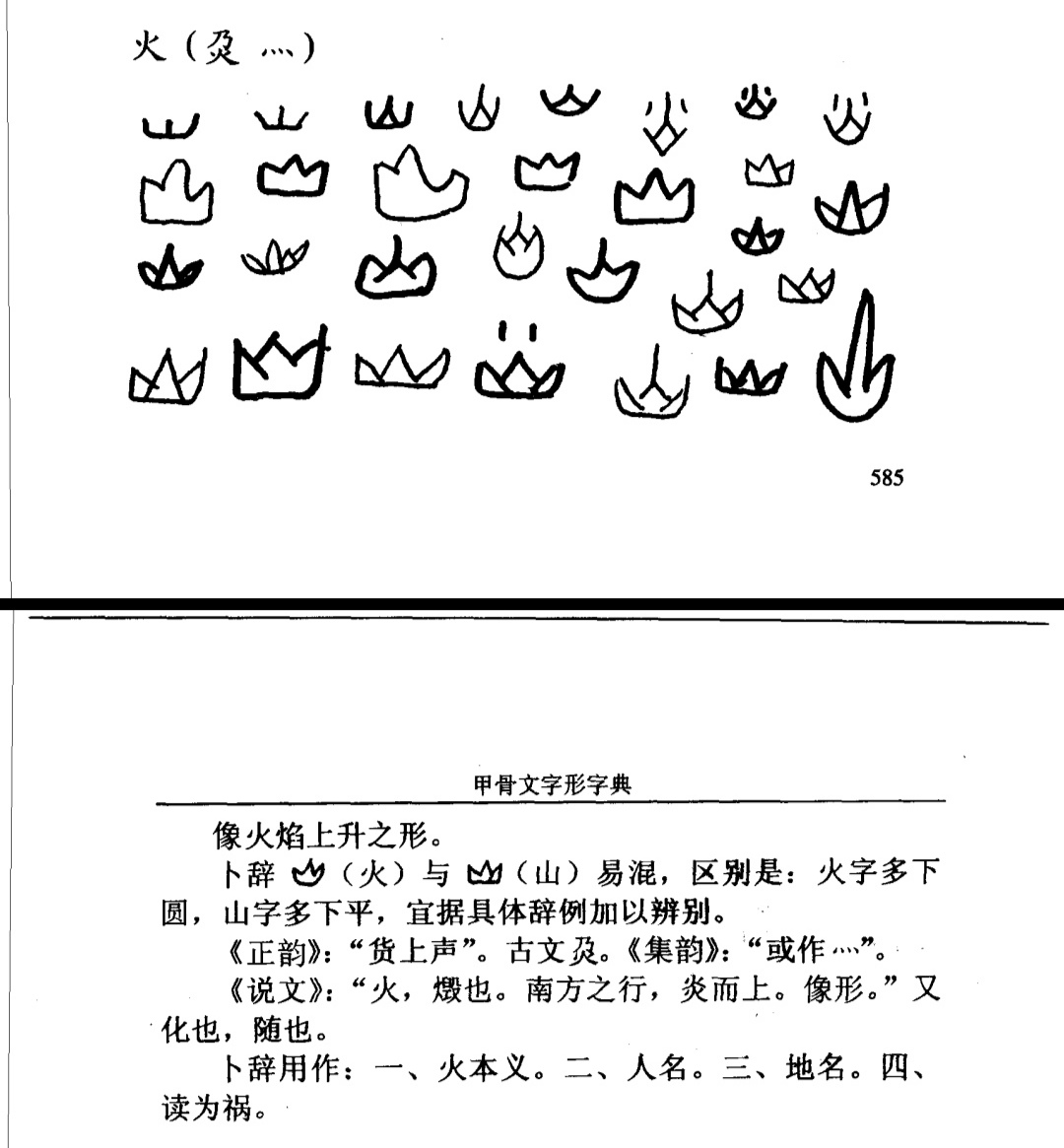 甲骨文【火(弧形底火焰形)】词例:隹火五月。有新大星并火。