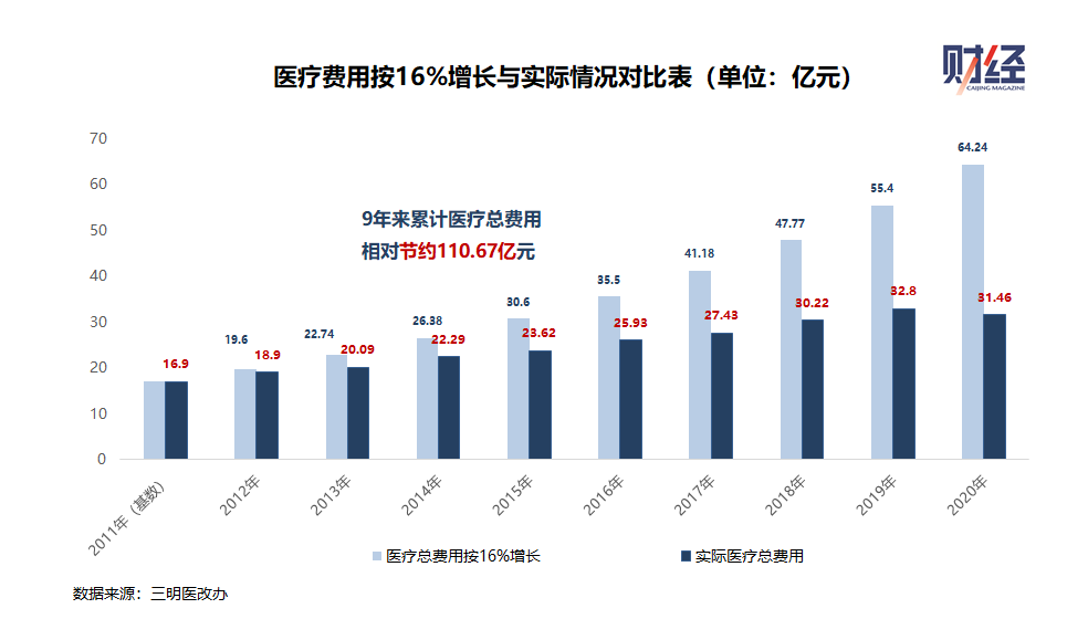 三明医改的实施情况,具体参看三明市政府的总结汇报:《三明医改这九年》。三明医改省级药品采用政府招标采购制度,“斩断医疗机构(包括院长和医生)的寻租空间”,这同样也为国家的医保基金节省了很大一笔资金。
