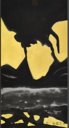 岛子圣水墨,一般人会归入宗教题材的作品,但作品意义实际已经超出了一般宗教的局限,已经进入现代人灵魂空间的哲学、社会学的探索,艺术构思十分巧妙,描写的其实是天空中即将落地的一块陨石,但艺术家的黄金视觉十分纯粹,展现了现代人灵魂与肉体的双重沉重,赋予了那块陨石的人与神不朽精神的探索意义。