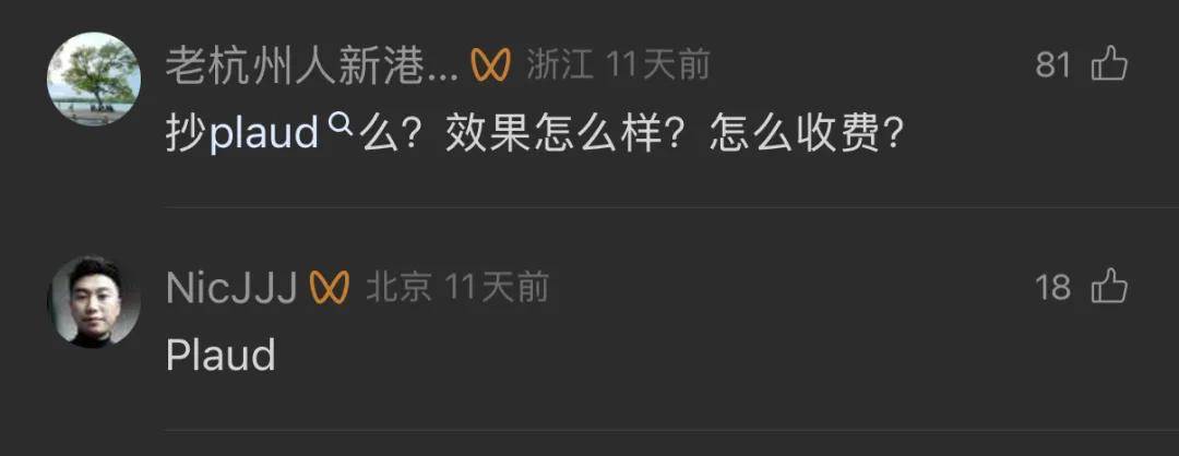 钉钉发布新品时,Plaud被用户多次提及,证明在这一赛道中Plaud已经占领部分先锋用户心中的第一认知。