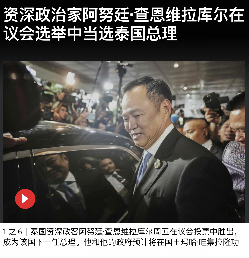 泰国新当选总理阿努廷曾表示,我每次见到中国人都很开心,我们从来未曾忘记自己身上流淌着的中华血液。