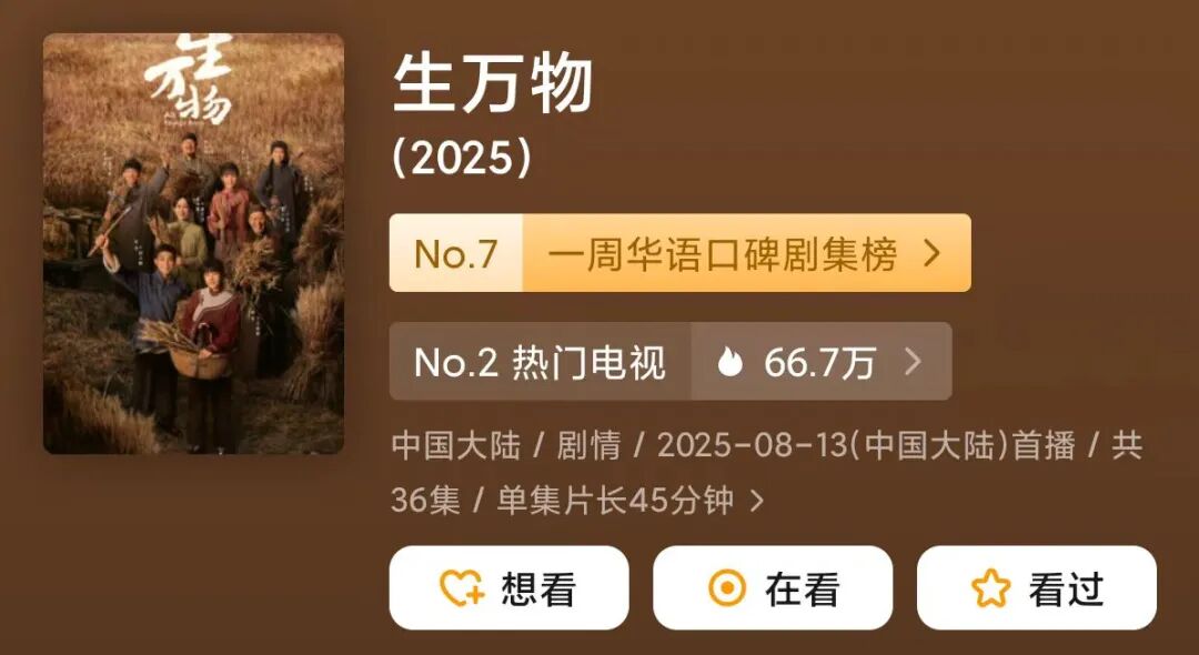 在剧集行业久违全民性爆款的当下,《生万物》抚平了行业的焦虑,并给予了从业者们一定的信心。
