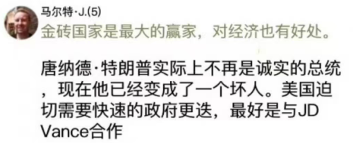 德国媒体还称美国陷入恐慌,评论底下不少人攻击美国和特朗普的。有德国评论员直接表示唐纳德·特朗普实际上不再是诚实的总统,现在他已经变成了一个坏人。美国迫切需要快速的政府更迭,最好是与万斯合作。