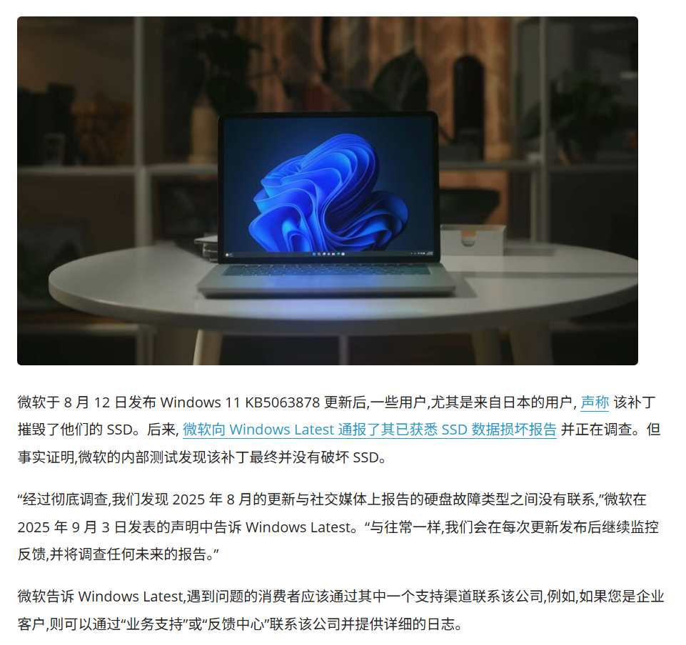 根据微软的说法,他们进行了许多轮测试,但无论是他们内部测试还是遥测数据,愣是没能复现出硬盘损坏的情况。就连他们的技术支持团队也没收到类似故障的报告。