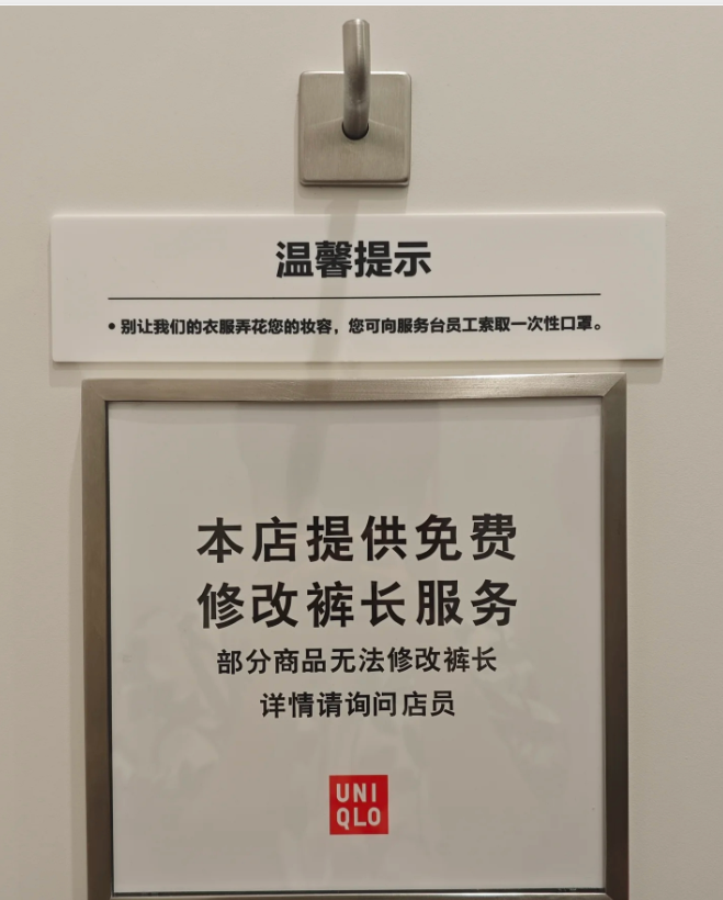 而在这个价格下,优衣库的服务并没有缩水:免费修改裤长、提供刺绣服务、下雨了还会给包装袋再套上一层防雨袋…