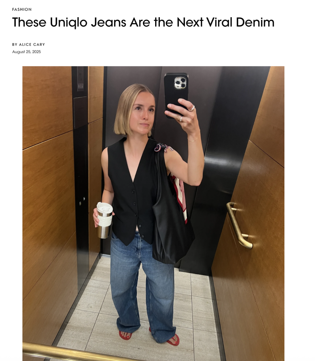 年轻人涌进店铺,在货架前排起长队,甚至连 VOGUE 都被优衣库的“神裤”吸引,忍不住推荐。