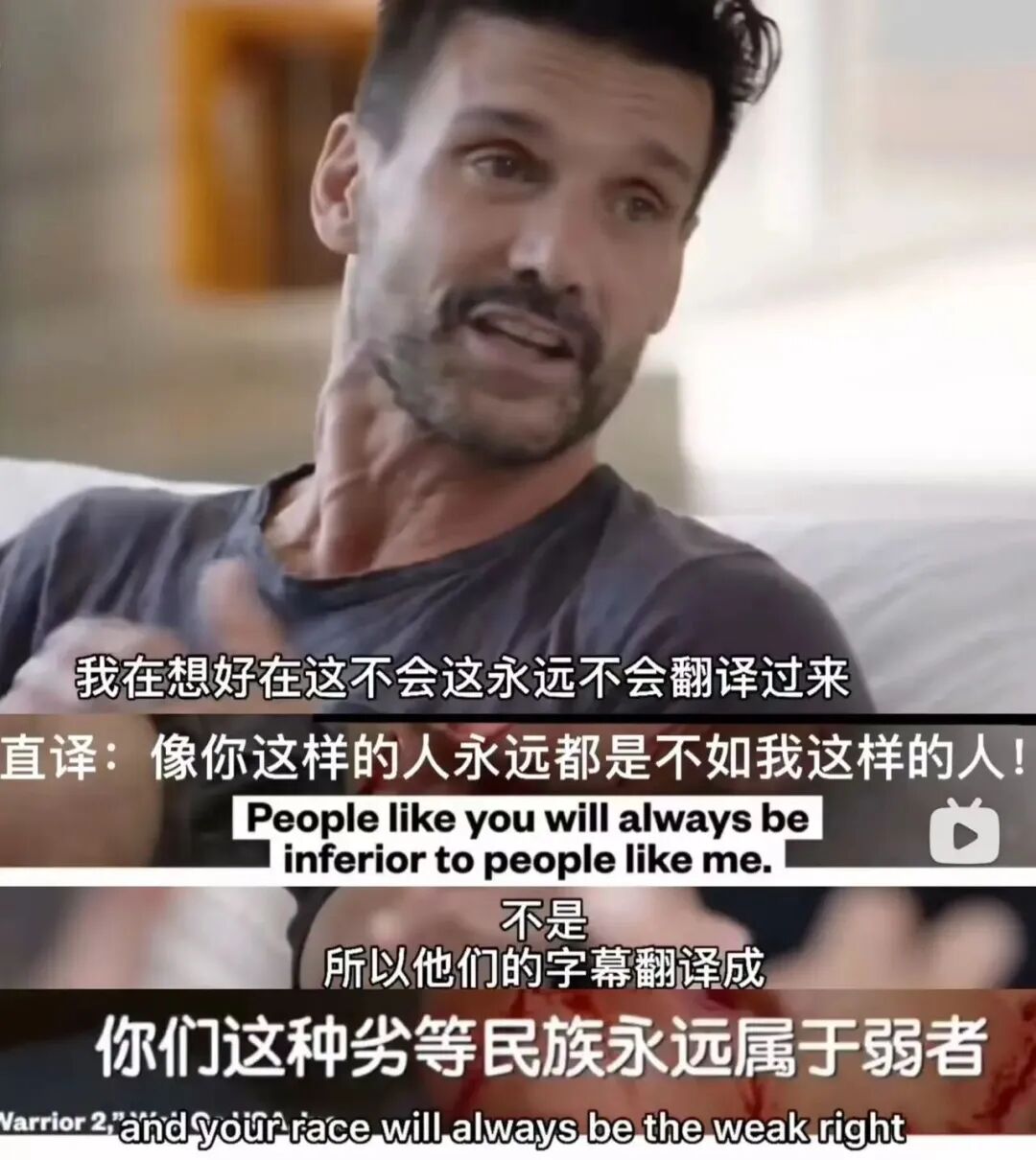 后来饰演雇佣兵的演员表示,吴京的字幕完全篡改了本来的台词,人家压根没提民族的事。这……吴京老师,您这么喜欢踢馆,自己拍霍元甲得了呗,何必这么猥琐呢?