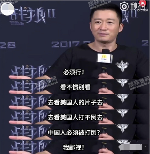 随后就是扣帽子,你不爱看战狼,那肯定就爱看美国片,所以你就是崇洋媚外,你就是贱。