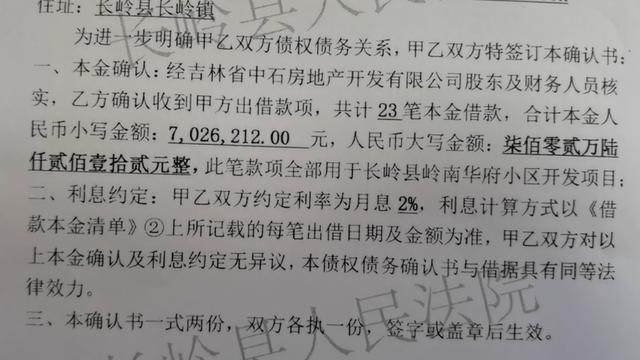 “当时他们说不签这份承诺书,这笔钱就不给我。我没办法,只好签了。钱才转到我的账上。” 姜志国认为,法院两份调解书确认的债权,之前是以房源作为抵押的,后来房源被政府拿去安置回迁户了,等于是长岭县政府接手了这笔债务,却只还了一部分。他算了一笔账,“(2019)吉0722民初4753号调解书确认的债权本金702.6212万及利息一直没有归还。从2017年至今,本金和利息加起来得有2000万了。”