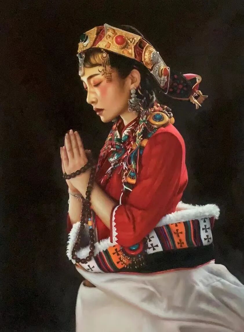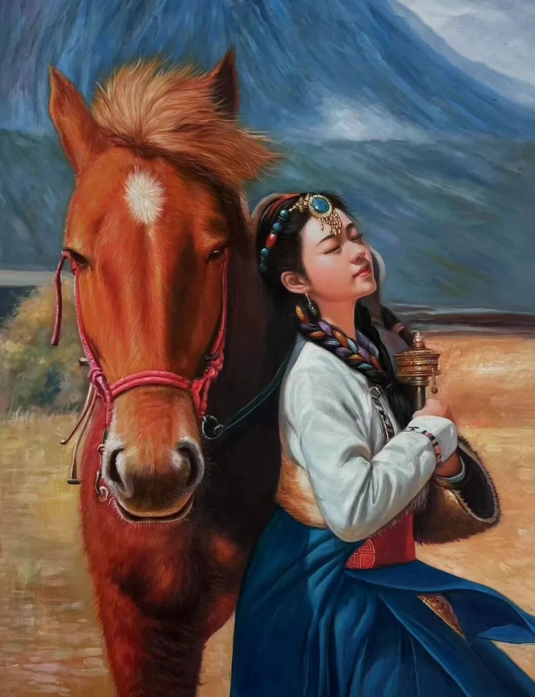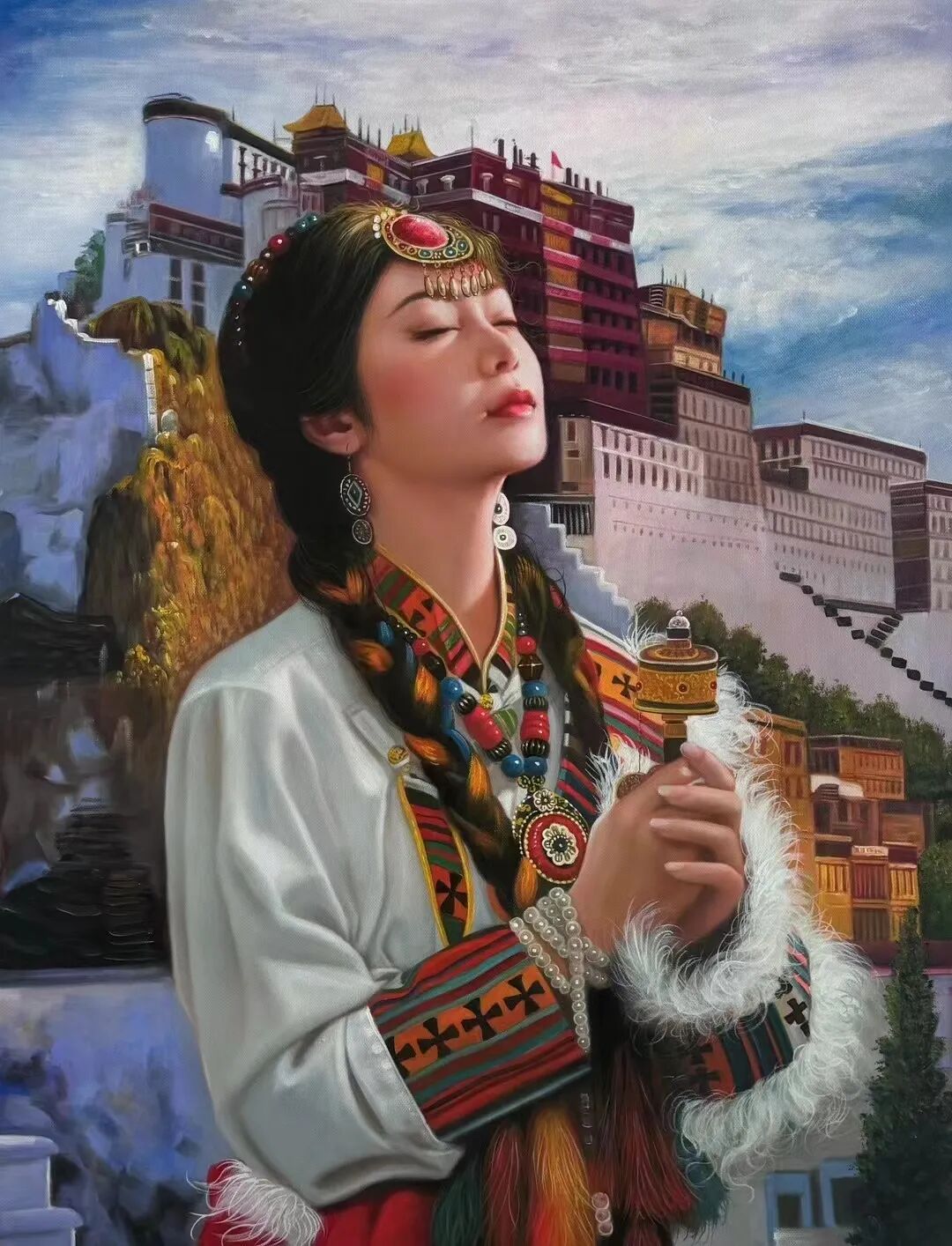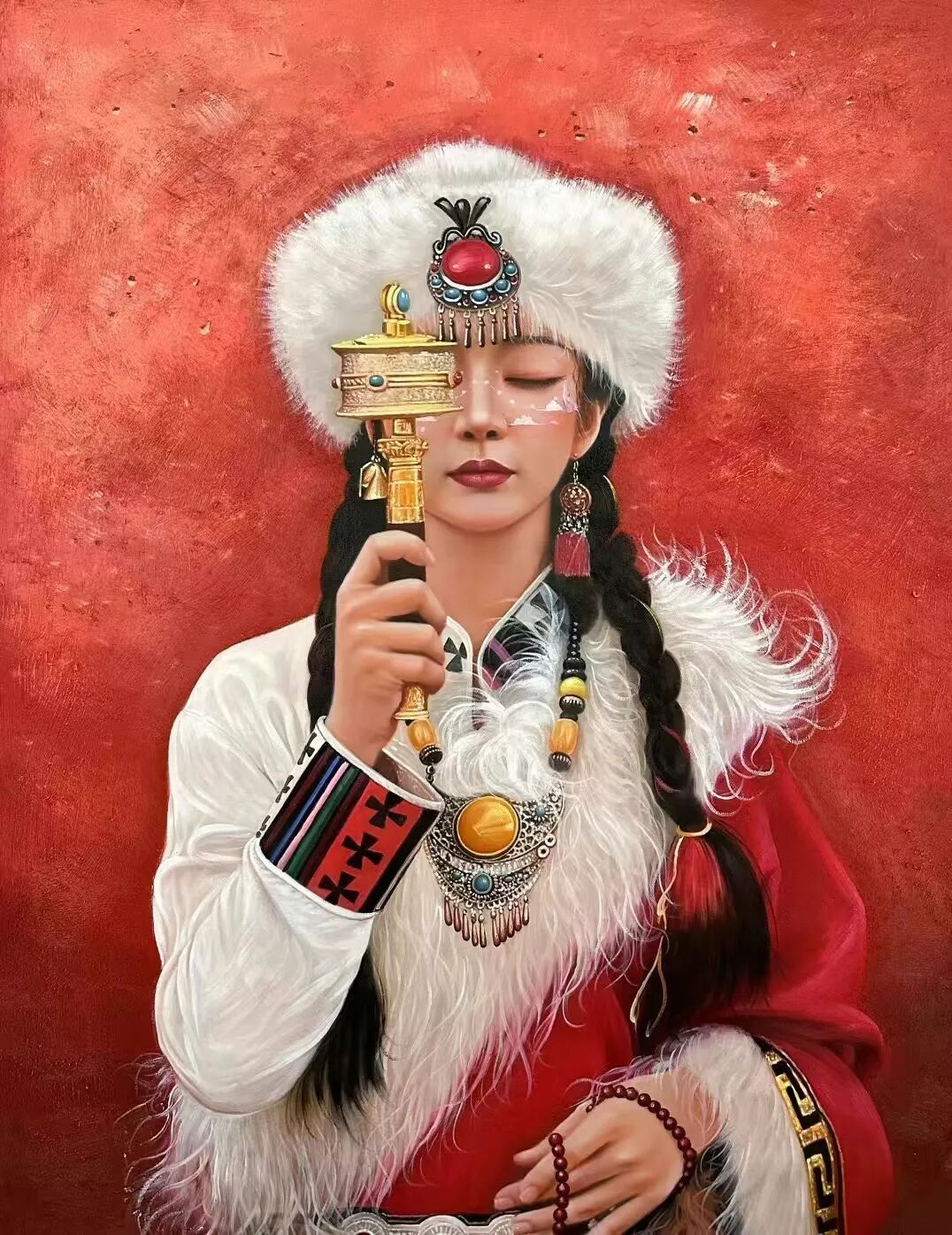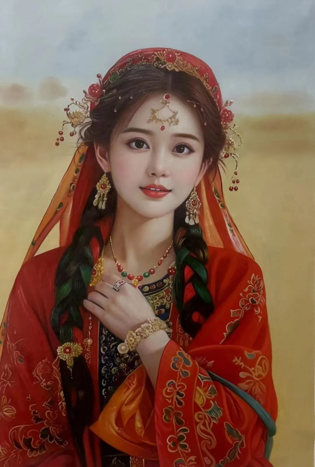 《民族人物》系列则展现了周曦对多样文化的深刻理解。他运用油画丰富的表现力,精确再现各民族特有的服饰质感与色彩特征,同时通过人物神态的刻画,展现不同民族的精神特质。这些作品既具有人类学价值,又是高超的艺术创造,体现出画家深厚的人文关怀。