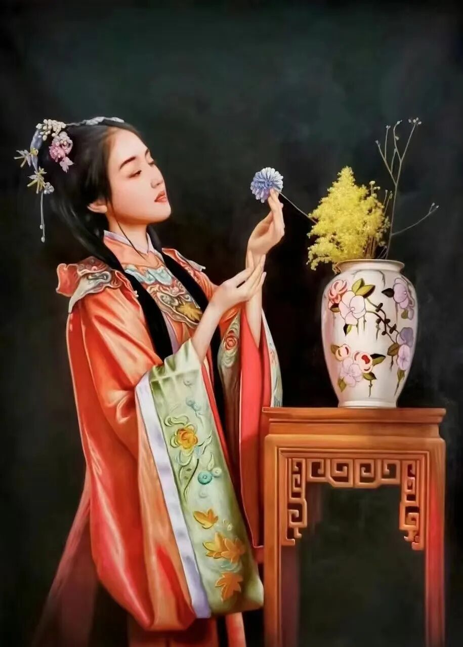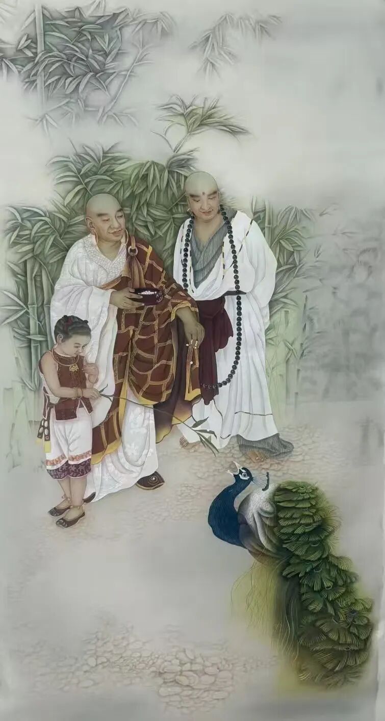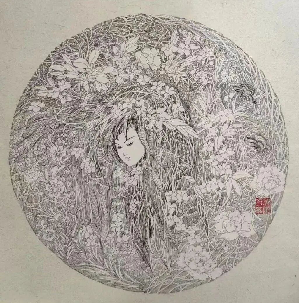 收藏的核心价值,始于艺术家对技法的绝对掌控。周曦的艺术底色,是中央美术学院国画系的扎实功底,更是师从范曾、李燕等名师后博采众长的“全能修炼”——从白描的线条韵律到工笔的精微写实,从水墨的氤氲意境到油画的色彩层次,甚至陶瓷绘画的材质肌理,他皆能信手拈来。这种“无边界”的技法能力,并非简单的技艺堆砌,而是为创作提供了“选择的自由”:画花鸟时,可借工笔之细勾勒翎羽的丝缕质感,又能以水墨之润晕染枝叶的生机;绘山水时,既能用传统皴法表现山石肌理,又可融入现代构成感的构图,让画面在“精”与“意”之间找到平衡。