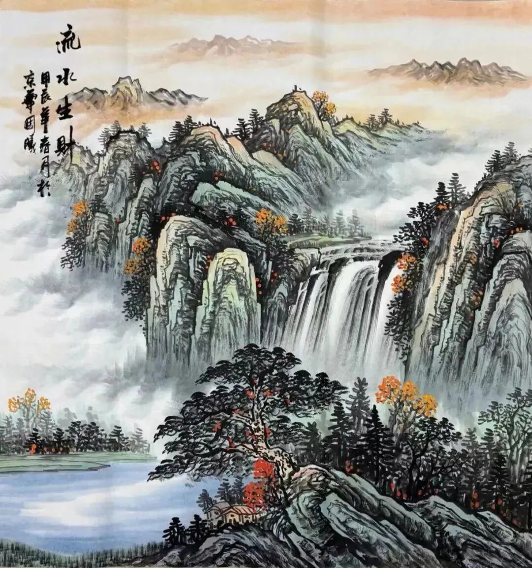 尤为值得关注的是,周曦将传统风水智慧进行当代转译,使其作品成为连接传统与现代的特殊桥梁。在他的山水画中,山势的布局暗合"来龙去脉",水口的走向关乎"财源流转",云气的萦绕关联"气息流通",这种深层的文化编码既满足了现代人对艺术品的审美需求,又回应了其对空间能量的关注,使艺术作品成为调节人居环境的智慧载体。