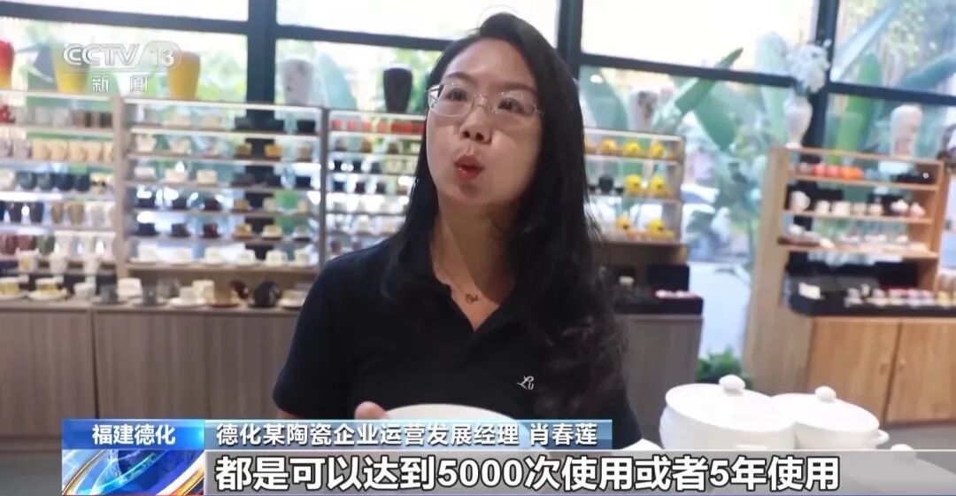 德化某陶瓷企业运营发展经理 肖春莲: 有一些撞击或者是碰撞的话,都没有问题。在正常使用下,这个碗可保证5000次或5年内光泽如新。