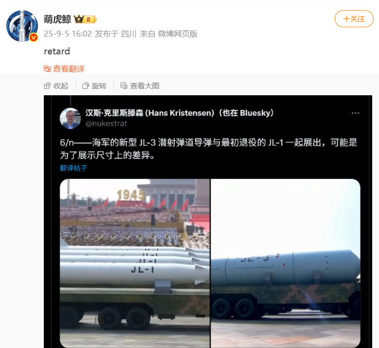 这在自诩客观的军控学界也不鲜见。比如说最近汉斯克里斯腾森把空射的惊雷1导弹当成了老式的海基巨浪1。本来搞不清楚这点的外国人挺多的,但是这位克里斯腾森先生,是原子科学家公报每年关于中国核力量年报的主要撰写者。既然他都这种水平了,我们怎么可能指望军控学界对于中国的评估是客观的。
