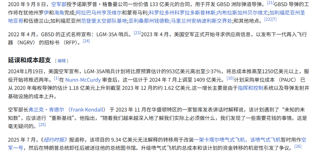 陆基的GBSD弹道导弹超支,同时在导弹井的建设策略上也反复不定。本来说要用旧的民兵三导弹井,但是最近又说要重新修建导弹井,以美国现在的工程能力,这成本与时间都不会好看;下一代的战略核潜艇也毫不意外的延迟了,也就空基的B21轰炸机顺利一些,但是首飞之后,后续的进度也慢了下来。