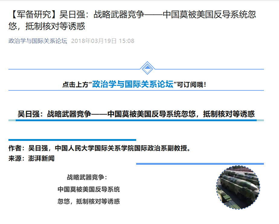 而很遗憾的是,国内很多军控理论家,都是西方理论的复读家(这倒也没什么奇怪的),自然军控界给普通人的印象就不太好了。