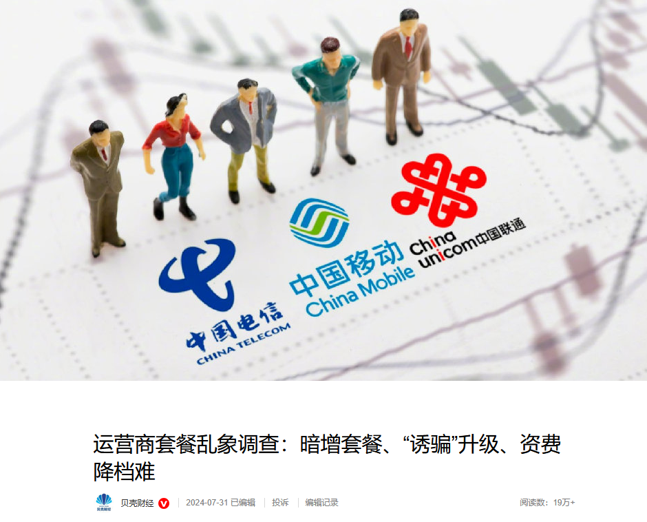 相关链接:《运营商套餐乱象调查:暗增套餐、“诱骗”升级、资费降档难》
