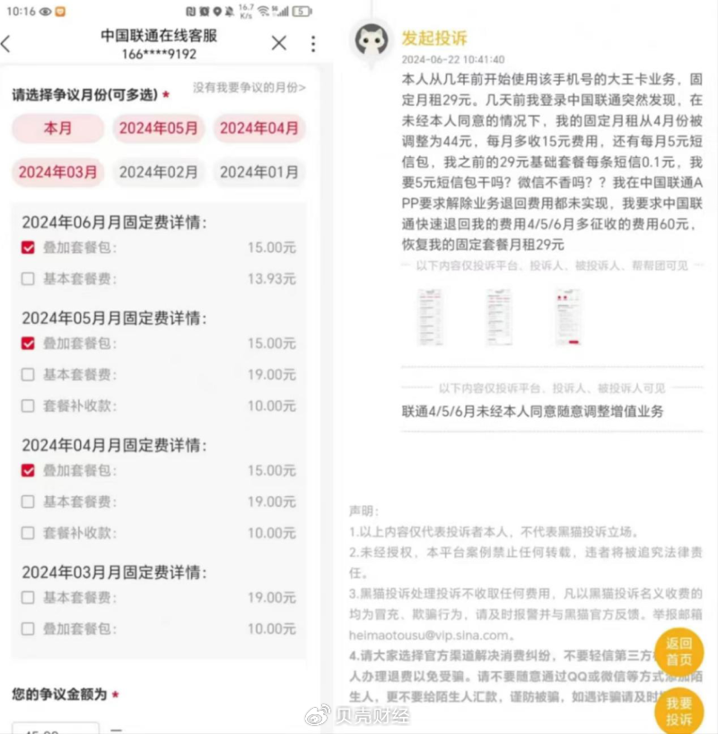 据这篇报道中的描述,受访的群众,河南的刘女士就遇到过类似的情况,这几年刘女士使用的是中国联通一款29元/月的大王卡套餐,然而在今年6月份的时候,她发现个人资费账单里从两个月前开始多出一个叠加套餐,每月多扣15元,此外还多了个5元短信包。