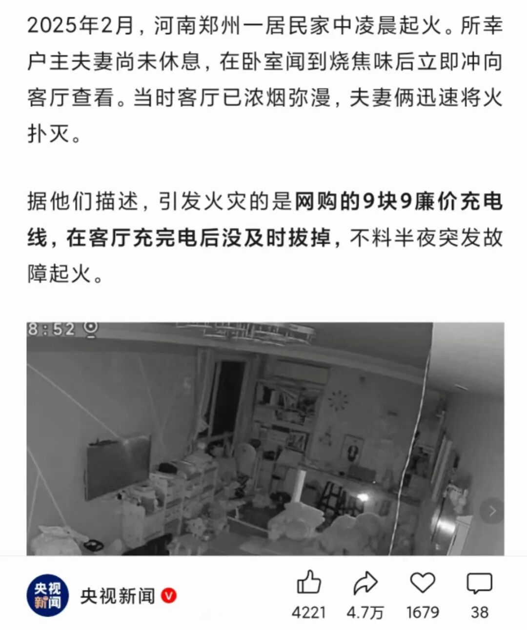 有人买了劣质充电线,用不到一周就坏掉,还差点烧坏手机。今年新闻里就曾报道过一起火灾事故,原因正是使用了三无充电器。商家跑路、找不到售后,最后消费者只能自己买单。