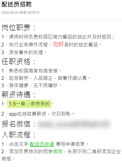 甚至他们有一个专门的岗位,叫宣传员。主要就是负责一个一个宿舍上门,推销自己的外卖平台。