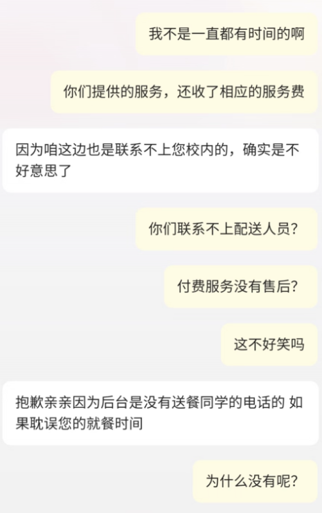 按学生们的说法,你一旦选了校园送,那就意味着你可能不太想吃这顿饭。