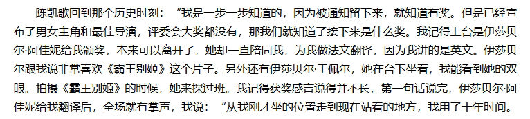 题外话,阿佳妮对中国电影没啥意见,当年她对《霸王别姬》的欣赏与支持就令陈凯歌感念多年。这回对王家卫这么刻薄,可能就是纯粹觉得难看。