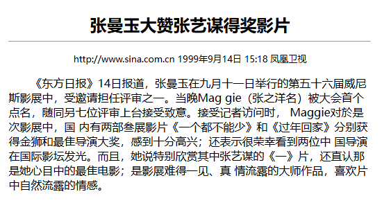 而1999年的威尼斯影展,最佳影片和最佳导演两个最大奖,竟破天荒地均由中国导演拿下。
