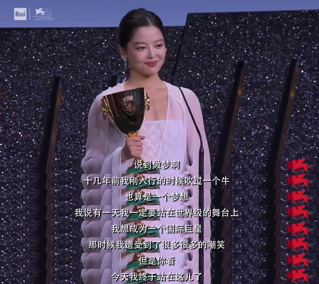 后脚在刚刚落幕的威尼斯电影节,她直接凭《日掛中天》成为史上第三位华人威尼斯影后。