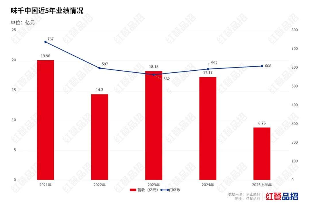 门店网络也持续波动。2022年,味千中国门店总数降至597家,较高峰期减少超百家,2023年继续关闭三十余家门店。2024年起,味千中国逐步恢复扩张,至2025年上半年,门店总数回升至608家。
