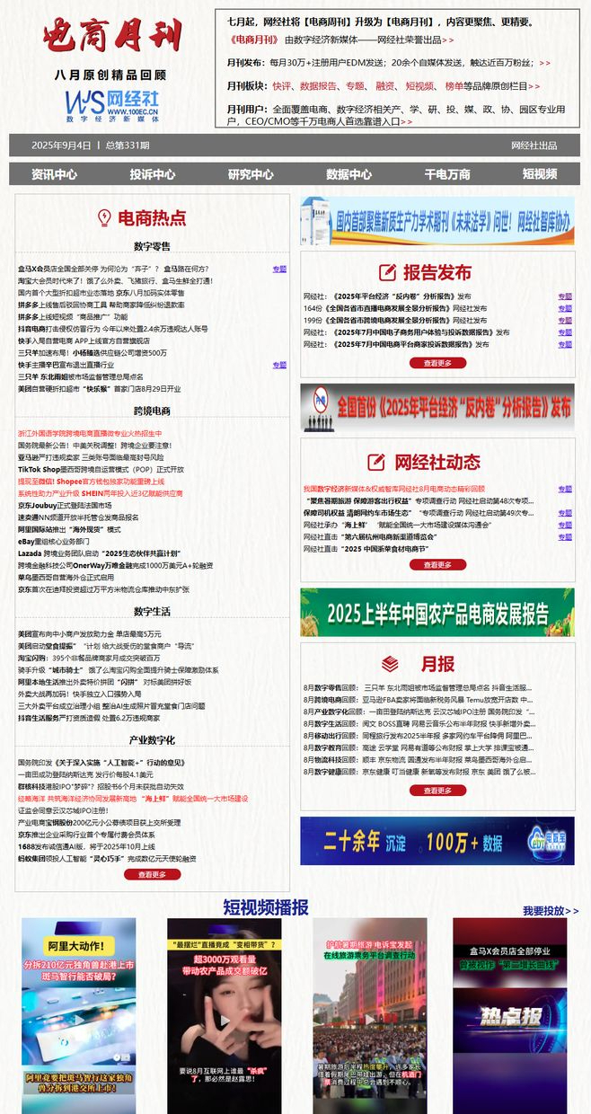 1、我国数字经济新媒体&权威智库网经社8月电商动态精彩回顾