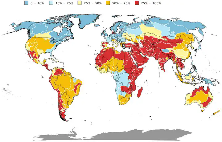 2018年各流域因农业部门导致的水资源压力程度地图(联合国粮农组织官网)