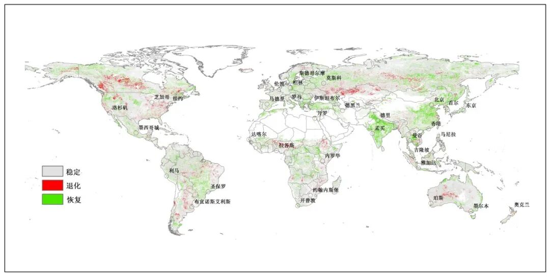 2000-2015年全球土地退化、恢复评估图。中科院供图。