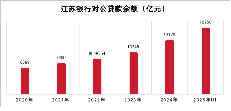 2020年末-2024年末,江苏银行的对公贷款余额从6369亿元攀升到13179 亿元,四年增长一倍还多。