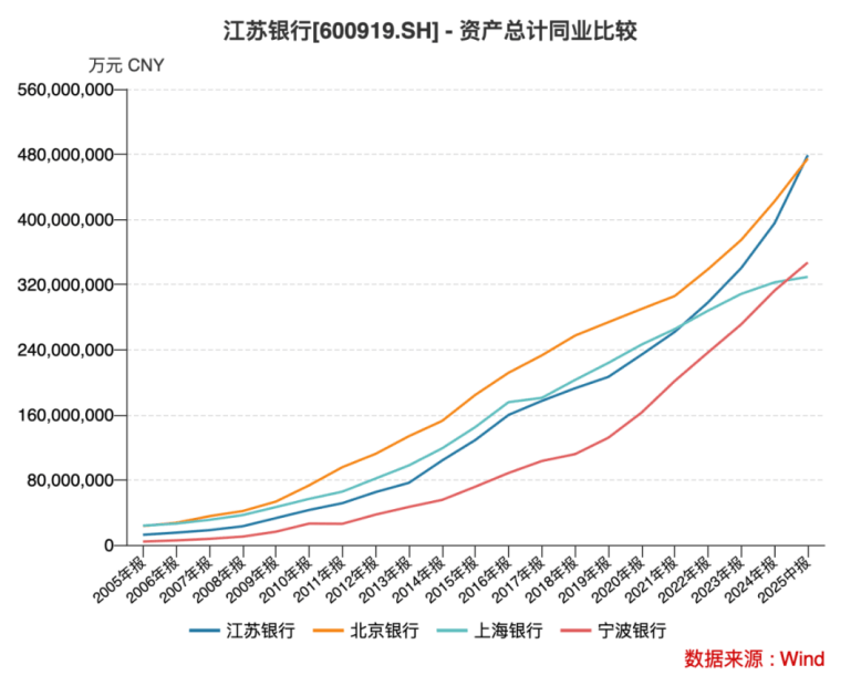 8月底,江苏银行公布中报:截至2025年6月末,资产总额4.79万亿元,较上年末增加约8365亿元,增幅21.16%。
