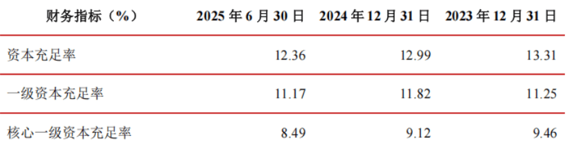 截至2025年月末,江苏银行的资本充足率12.36%,一级资本充足率11.17%、核心一级资本充足率8.49%,较上末分别下降0.63个百分点、0.65个百分点、0.63个百分点。