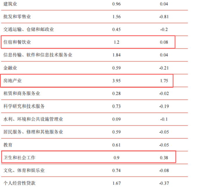 截至2025年6月末,江苏银行覆盖的行业中,房地产业不良贷款率3.95%,较上年末上浮1.75%;住宿和餐饮业不良贷款率1.2%,较上年末上浮0.08%;卫生和社会工作不良贷款率0.9%,较上年末上浮0.38%。