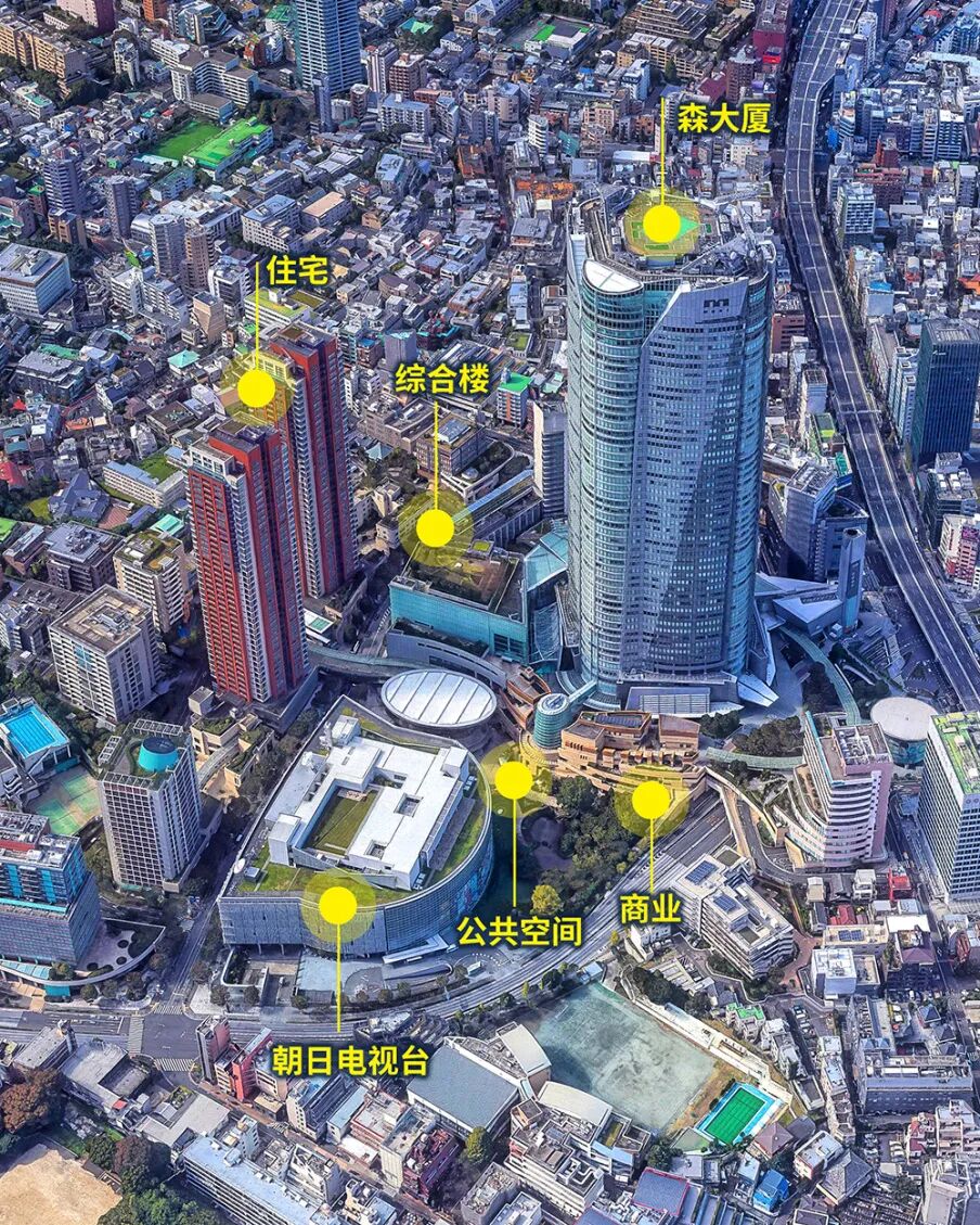 该项目位于日比谷线与大江户线交汇处,在土地私有制背景下,成功整合了超过400个小产权地块,打造了一个占地11公顷的「垂直花园城市」,将办公、住宅、商业、文化等多元功能高度融合,成为平衡开发收益与公共空间营造的经典案例。