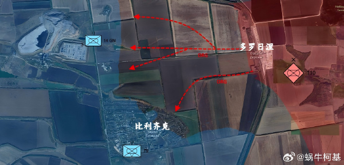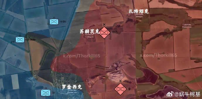 根据比利齐克以东俄军不断使用由 3-4 名士兵组成的小型 DRG,从梅尔察洛韦货运火车站(多罗日内 - 48.42268,37.2239)附近的基地出发,一直在灰色地带进行主动侦察行动也能知道扎特绍克肯定仍在俄军手中。